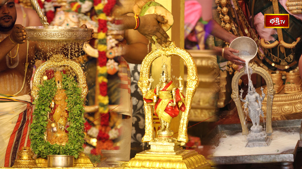 తిరుమల ఆనంద నిలయంలో శ్రీ మలయప్ప స్వామివారి మూల విరాణ్మూర్తి, ఇతర ఉత్సవమూర్తులతో పాటు, ప్రత్యేకంగా నాలుగు పెద్ద సాల గ్రామాలు, ఇంకా కొన్ని చిన్న సాలగ్రామాలు నిత్యాభిషేకాలు, అర్చనలు అందుకుంటూ ఉన్నాయి. ఈ సాలగ్రామాలన్నీ శ్రీస్వామివారి పాదాల చెంత వెండి పాత్రల్లో ఉంచబడి పూజింపబడుతూ ఉన్నాయి. ప్రతిరోజూ భోగ శ్రీనివాసమూర్తితో పాటు ఈ సాలగ్రామాలకు అభిషేకం జరిగిన తర్వాత అన్ని మూర్తులతోపాటు ఈ సాలగ్రామాలకు పుష్పార్చన, నివేదన జరుపబడుతున్నది.
