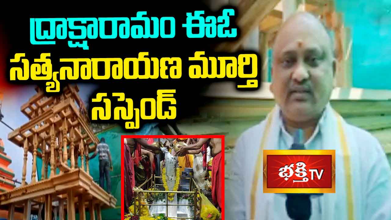 డాక్టర్‌ బీఆర్‌ అంబేడ్కర్‌ కోనసీమ జిల్లా ద్రాక్షారామంలోని భీమేశ్వరస్వామి ఆలయ ఈవో పీటీవీవీ సత్యనారాయణమూర్తిని సస్పెండ్‌ చేస్తూ ప్రభుత్వం ఆదేశాలు జారీ చేసింది. ఆయనపై ఒకటి కాదు.. రెండు కాదు.. మొత్తంగా 33 అభియోగాలొచ్చాయి. ఉన్నతాధికారుల అనుమతి తీసుకోకుండా గతంలో కొత్త రథం నిర్మాణానికి రూ.26.93 లక్షల విరాళాలు సత్యనారాయణమూర్తి వసూలు చేశారు. అలాగే రూ.18.75 లక్షలను రథం తయారీకి వినియోగించినా కూడా నాణ్యమైన చెక్కను వినియోగించలేదు. కనీసం ఆ విషయంలో శ్రద్ధ చూపలేదు. దీంతో ఆయనపై అభియోగాలు వెల్లువెత్తాయి. ఇలా మొత్తంగా ఈవోపై 33 అభియోగాలు వచ్చాయి.