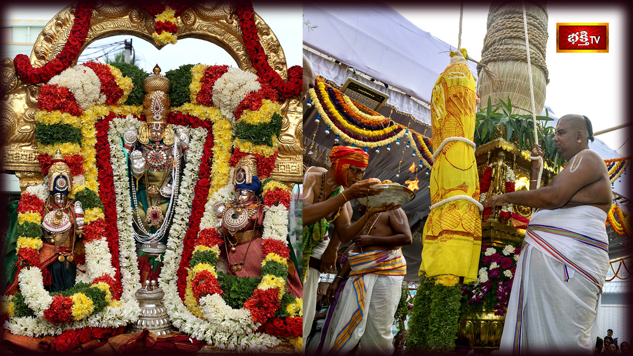 అనంతరం ధ్వజస్తంభం వద్ద విశేషపూజా కార్యక్రమాలు జరిగాయి. అంతకుముందు భేరితాడనం, భేరిపూజ, ధ్వజపటం, నవసంధి, శ్రీవారి మాడ వీధి ఉత్సవం, ఆస్థానం నిర్వహించారు. మిథున లగ్నంలో శ్రీదేవి, భూదేవి సమేత శ్రీ ప్రసన్న వేంకటేశ్వరస్వామివారి సమక్షంలో ధ్వజారోహణం నిర్వహించారు. ఇందులో వైఖానస శాస్త్రోక్తంగా గరుత్మంతుణ్ణి నూతన వస్త్రంపై లిఖించి, పూజలు చేసి, ధ్వజస్తంభంపై ప్రతిష్ఠించారు. ఎన్ని దానాలు చేసినా ధ్వజారోహణకార్యంలో గరుడారోహణం వీక్షించిన భక్తులు పునీతులు అవుతారని పురాణాలు చెబుతున్నాయి. 18 గణాలను, ముక్కోటి దేవతలను బ్రహ్మోత్సవాలకు ఆహ్వానించడం దీని లక్ష్యం. సమాజశ్రేయస్సుకు, వంశాభివృద్ధికి ధ్వజారోహణం దోహదపడుతుంది.