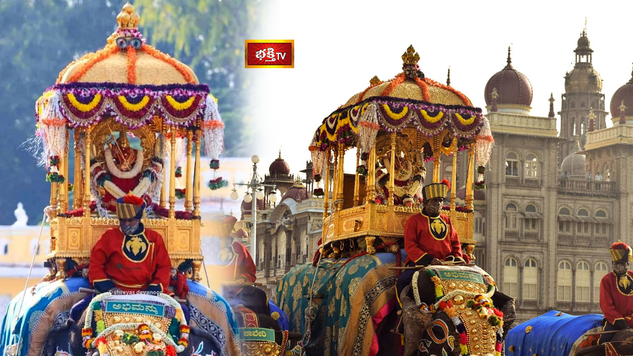 దసరా ఉత్సవాలు అనగానే మనకు గుర్తొచ్చేది మైసూరే. ఇక్కడి దసరా ఉత్సవాలను చూసేందుకు దేశ విదేశాల నుంచి ప్రజలు వస్తుంటారు. ముఖ్యంగా ఇక్కడ నిర్వహించే దసరా జంబూ సవారీ ప్రపంచ ప్రఖ్యాతిగాంచింది. నిన్న దసరా పండుగ సందర్భంగా మైసూరు దసరా జంబూ సవారీ అత్యంత వైభవంగా సాగింది. నలభై ఏళ్ల వయసున్న గజరాజు అభిమన్యు ఇక్కడ స్పెషల్ అట్రాక్షన్. అభిమన్యుపై ముందుగా 750 కేజీల బరువున్న బంగారు అంబారీని కట్టి దానిలో శ్రీ చాముండేశ్వరి అమ్మవారి బంగారు ఉత్సవ విగ్రహాన్ని ఏర్పాటు చేశారు. ఈ వేడుకలో వందలాది మంది జానపద కళాకారులు పాల్గొని ప్రదర్శనలిచ్చారు.