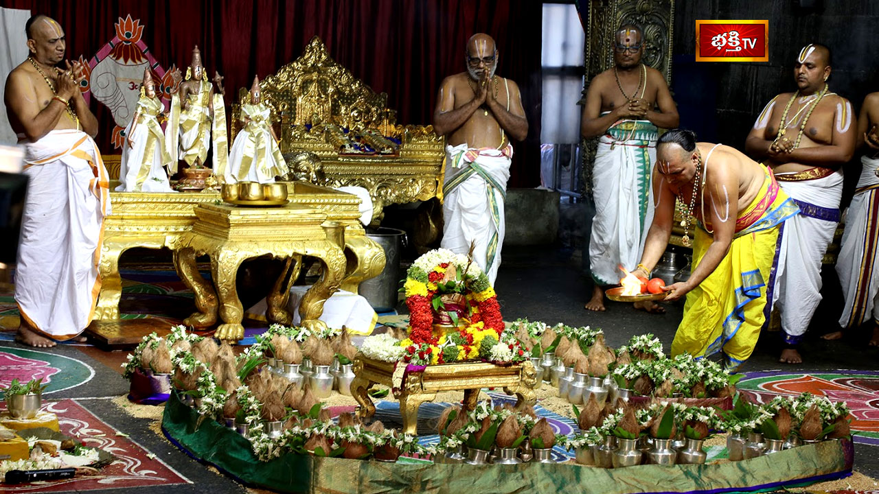 మొదటిరోజు శ్రీ మలయప్ప స్వామివారికి ఉన్న బంగారు కవచాన్ని తీసివేసి, హోమాలు, అభిషేకాలు పంచామృత స్నపన తిరుమంజనం నిర్వహిస్తారు. ఆ తర్వాత శ్రీ స్వామివారికి వజ్రకవచం అలంకరిస్తారు. రెండవరోజు ముత్యాల కవచం సమర్పిస్తారు. మూడవరోజు తిరుమంజనాదులు పూర్తిచేసి, బంగారు కవచాన్ని పునః సమర్పిస్తారు. ఈ బంగారు కవచాన్ని మళ్లీ వచ్చే ఏడాది జ్యేష్టాభిషేకం సమయంలోనే తీస్తారు. అంతవరకు సంవత్సరం పొడవునా శ్రీ వేంకటేశ్వర స్వామివారు బంగారు కవచంతోనే వివిధ ఉత్సవాల్లో పాల్గొంటారు.