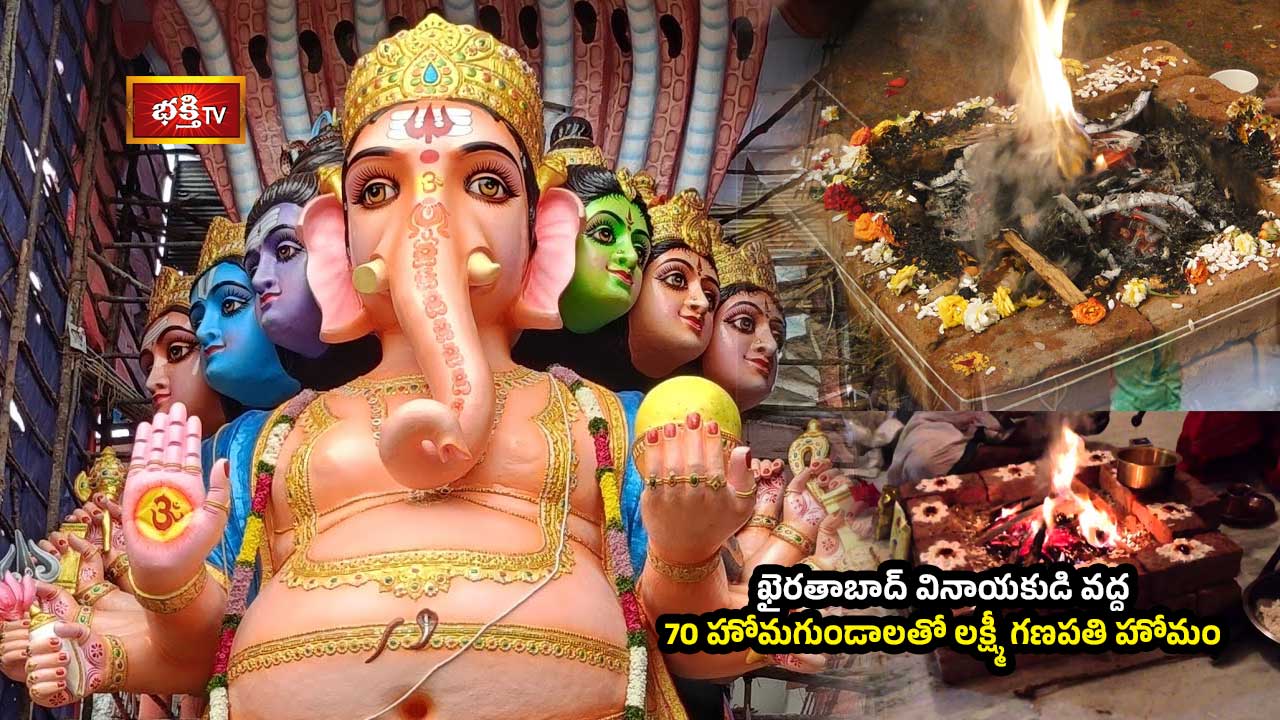 ఈ ఏడు ఖైరతాబాద్ వినాయకుడిని ప్రతిష్టించి 70 వసంతాలు పూర్తయ్యాయి. ఈ సందర్భంగా 70 హోమగుండాలతో లక్ష్మీ గణపతి పూజ, రుద్ర హోమం ఉత్సవ సమితి నిర్వహిస్తున్నారు. ఆర్యవైశ్య సంఘం ఆధ్వర్యంలో లక్ష్మి గణపతి, రుద్రాక్ష హోమం నిర్వహించారు. 70 హోమాల కార్యక్రమంలో దాదాపు 2080 జంటలు పాల్గొని రుద్ర హోమం నిర్వహించారు. ఖైరతాబాద్ వినాయకుడి ఉత్సవాలు నిర్వహించడం.. 70 వసంతాలు పూర్తవడంతో సంబరాలు పెద్ద ఎత్తున నిర్వహిస్తున్నారు. 70 అడుగుల సప్త ముఖ మహా గణపతిని చూసేందుకు భక్తులకు రెండు కళ్లూ చాలడం లేదు.
