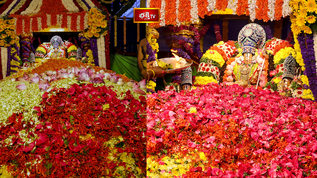 ఆంధ్రప్రదేశ్, తమిళనాడు, కర్ణాటక రాష్ట్రాల నుండి దాతలు 3 టన్నుల పుష్పాలను విరాళంగా అందించారు. ఆద్యంతం శోభాయమానంగా సాగిన ఈ పుష్పయాగ మహోత్సవాన్ని చూసి భక్తులు తన్మయత్వం చెందారు. శ్రీరాముని జన్మనక్షత్రమైన పునర్వసు నక్షత్రాన్ని పురస్కరించుకుని ఆలయంలో పుష్పయాగం చేపట్టారు. మొదటగా అర్చకులు 108 సార్లు విష్ణుగాయత్రి మంత్రాన్ని పఠించి పుష్పాలకు అధిపతి అయిన పుల్లుడు అనే దేవున్ని ప్రసన్నం చేసుకున్నారు. ఇలా చేయడం వల్ల ప్రకృతిమాత పులకించి ఎలాంటి వైపరీత్యాలు తలెత్తకుండా స్వామివారు కరుణిస్తారని నమ్మకం. బ్రహ్మోత్సవాల్లో గానీ, నిత్యకైంకర్యాల్లో గానీ అర్చక పరిచారకుల వల్ల, అధికార అనధికారుల వల్ల, భక్తుల వల్ల తెలియక ఏవైనా లోపాలు జరిగి ఉంటే వాటికి ప్రాయశ్చిత్తంగా పుష్పయాగం నిర్వహిస్తారు. ఈ యాగం నిర్వహణ వల్ల సమస్తదోషాలు తొలగిపోతాయని అర్చకులు తెలిపారు. పుష్పయాగం అనంతరం రాత్రి 7 నుంచి శ్రీ సీతాలక్ష్మణ సమేత కోదండరామస్వామి వారు ఆలయ నాలుగు మాడ వీధుల్లో విహరించి భక్తులకు దర్శనభాగ్యం కల్పించారు.