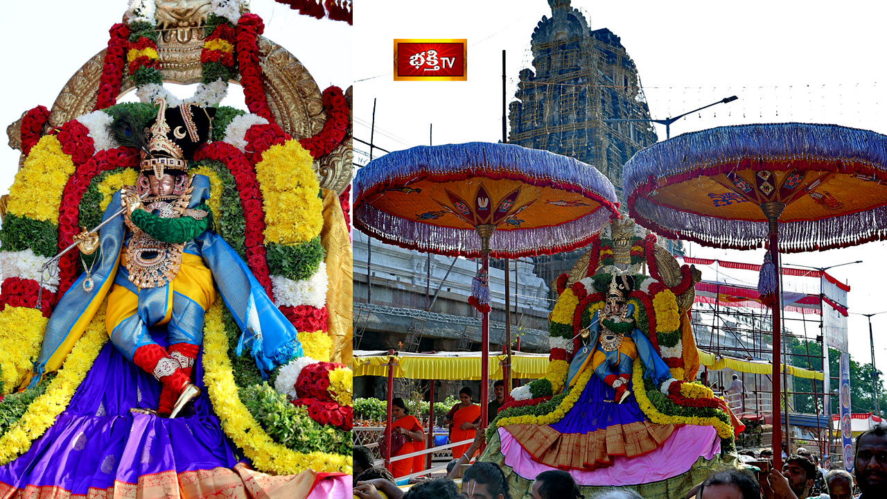 కేరళ డ్రమ్స్, భక్తజన బృందాల చెక్కభజనలు, కోలాటాలతో స్వామివారిని కీర్తిస్తుండగా, మంగళవాయిద్యాల నడుమ స్వామివారి ఊరేగింపు కోలాహలంగా జరిగింది. భక్తులు అడుగడుగునా కర్పూరహారతులు సమర్పించి స్వామివారిని దర్శించుకున్నారు. పురాణాల ప్రకారం.. కృష్ణుడు వెన్నదొంగ. రేపల్లెలో బాలకృష్ణుడు యశోదమ్మ ఇంట్లోనే గాక అందరి ఇళ్లలోకి వెళ్లి వెన్న ఆరగించేవారు. ఈ చిన్నికృష్ణుడి లీలలను గుర్తు చేస్తూ రాములవారు వెన్నకుండతో భక్తులకు దర్శనమిచ్చారు. ఈ కార్యక్రమంలో ఆలయ డెప్యూటీ ఈవో శ్రీ నటేష్ బాబు, సూపరింటెండెంట్ శ్రీ హనుమంతయ్య, టెంపుల్ ఇన్స్పెక్టర్ శ్రీ నవీన్, విశేష సంఖ్యలో భక్తులు పాల్గొన్నారు.
