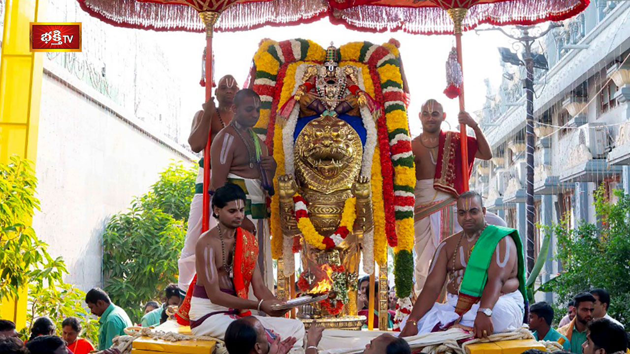 హైదరాబాద్లోని జూబ్లీహిల్స్ శ్రీ వేంకటేశ్వరస్వామివారి బ్రహ్మోత్సవాలు అత్యంత వైభవంగా జరుగుతున్నాయి. ఈ బ్రహ్మోత్సవాల్లో భాగంగా పెద్ద ఎత్తున వివిధ వాహన సేవలు జరుగుతున్నాయి. ఈ క్రమంలోనే శుక్రవారం ఉదయం శ్రీనివాసుడు శ్రీ యోగ నరసింహ స్వామి అలంకారంలో సింహ వాహనంపై అభయమిచ్చారు. భక్తులు అడుగడుగునా కర్పూర హారతులు సమర్పించారు. భక్తజన బృందాల కోలాటాలు, చెక్కభజనలు, వాయిద్యాలు ఆకట్టుకున్నాయి.