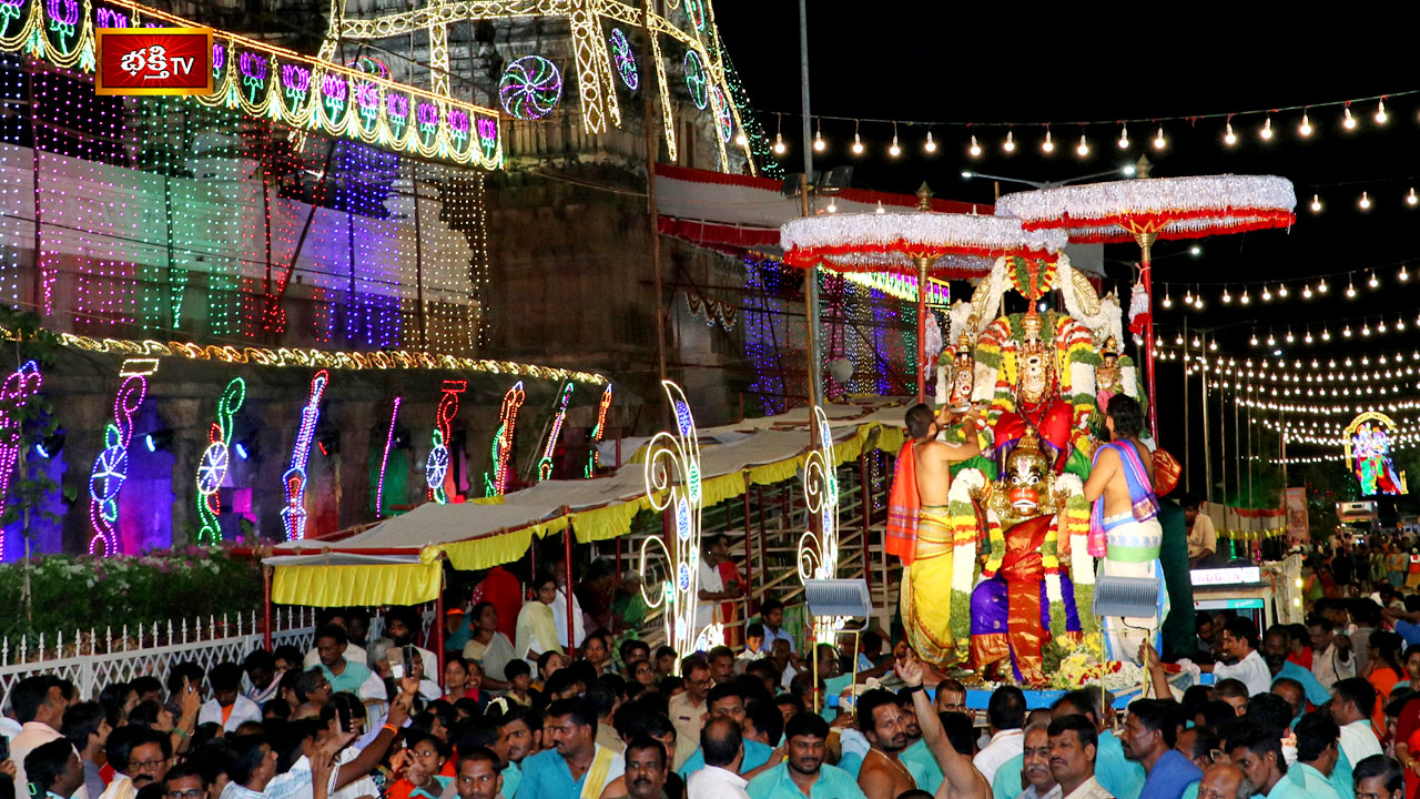 రాత్రి 7 గంటల నుండి కేరళ డ్రమ్స్, భక్తజన బృందాల చెక్కభజనలు, కోలాటాలతో స్వామివారిని కీర్తిస్తుండగా, మంగళవాయిద్యాల నడుమ వాహనసేవ కోలాహలంగా జరిగింది. భక్తులు అడుగడుగునా కర్పూరహారతులు సమర్పించి దర్శించుకున్నారు. త్రేతాయుగంలో రామభక్తునిగా, భగవద్భక్తులలో అగ్రగణ్యుడుగా ప్రసిద్ధిగాంచిన వారు హనుమంతుడు. రాముడు భక్తాగ్రగణ్యుడైన హనుమకు ఆత్మతత్వాన్ని బోధించినట్లు ప్రాచీన వాఙ్మయం ద్వారా తెలుస్తోంది. హనుమంతుడు తనను సేవించే భక్తులకు ఆత్మోన్నతిని ప్రసాదిస్తున్నారు. దాసభక్తికి ప్రతీకగా స్వామివారు హనుమంత వాహనంపై ఊరేగుతున్నారు.