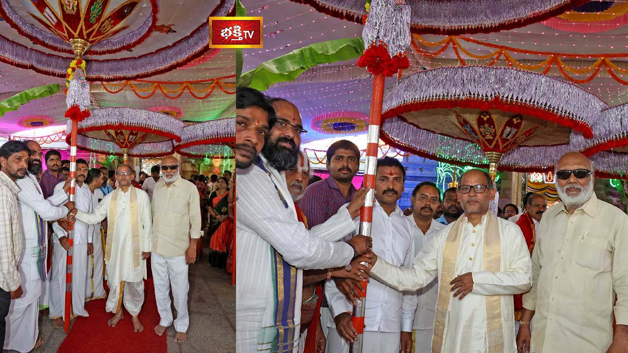 శ్రీ క‌ల్యాణ వేంక‌టేశ్వ‌ర‌స్వామివారికి తిరునిన్రావుర్ గొడుగులు, పట్టు వస్త్రాలు