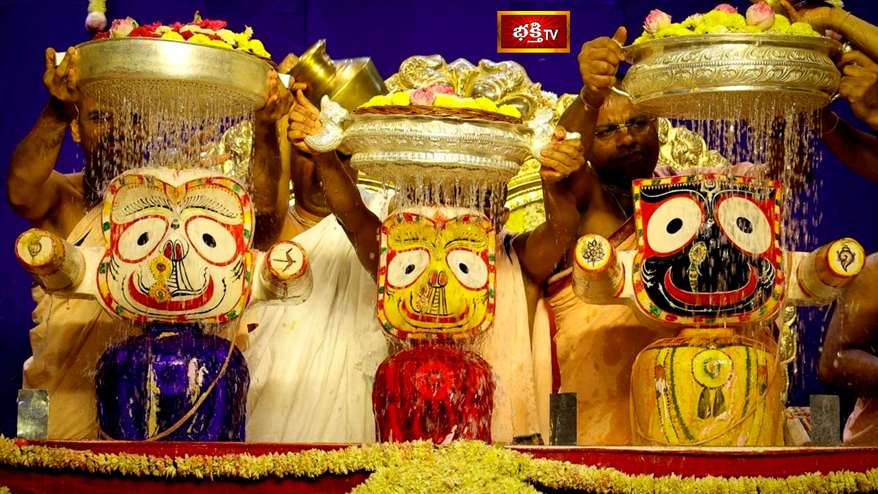 ఏ దైవాన్నైనా అష్టోత్తర శతనామాలతో అర్చిస్తే శుభప్రదమని భావిస్తాం. ఆ నేపథ్యంలోనే పూరీ జగన్నాథునికి కూడా 108 కలశాలతో జ్యేష్ఠపూర్ణిమ అభిషేకం నిర్వహిస్తారు. ఇందుకోసం ఆలయ ప్రాకారంలోని బావి నీటిని మాత్రమే వినియోగిస్తారు. స్నానవేదికపై ముగ్గురు దేవతలతో పాటు సుదర్శనుణ్ణి కూడా ప్రతిష్టిస్తారు. అనంతరం జగన్నాథునికి 35 కలశాలు, బలరాముడికి 33 కలశాలు, సుభద్రకు 22 కలశాలు, సుదర్శనుడికి 18 కలశాలతో అభిషేకం చేస్తారు. ఈ సమయంలో భక్తులందరూ నేత్రపర్వంగా స్వామివారి అభిషేకాన్ని తిలకిస్తారు. అభిషేకం పూర్తైన వెంటనే దేవతలకు కిరీటాలు ధరింపజేసి నైవేద్యాలు సమర్పిస్తారు. అభిషేకించిన జలాన్ని భక్తులకు తీర్థంగా ఇస్తారు.