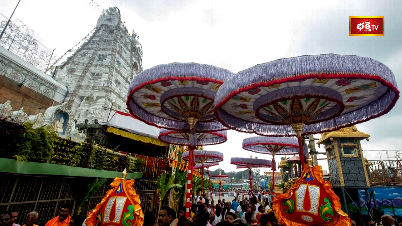 నాలుగు మాడ వీధుల్లో ఊరేగించిన అనంతరం ఆలయంలోకి తీసుకెళ్లారు. గరుడసేవలో ఈ గొడుగులను అలంకరించనున్నారు. చెన్నైకి చెందిన తిరుప‌తి అంబ్రాలా చారిటిస్ ట్రస్టీ శ్రీ వ‌ర‌ద‌రాజులు 11 గొడుగుల‌ను టీటీడీ ఈవో శ్రీ జె.శ్యామ‌ల‌రావుకు శ్రీ‌వారి ఆల‌యం వ‌ద్ద‌ అంద‌జేశారు. ఈ కార్య‌క్ర‌మంలో శ్రీ‌వారి ఆల‌య డిప్యూటీ ఈవో శ్రీ లోక‌నాథం త‌దిత‌రులు పాల్గొన్నారు.
