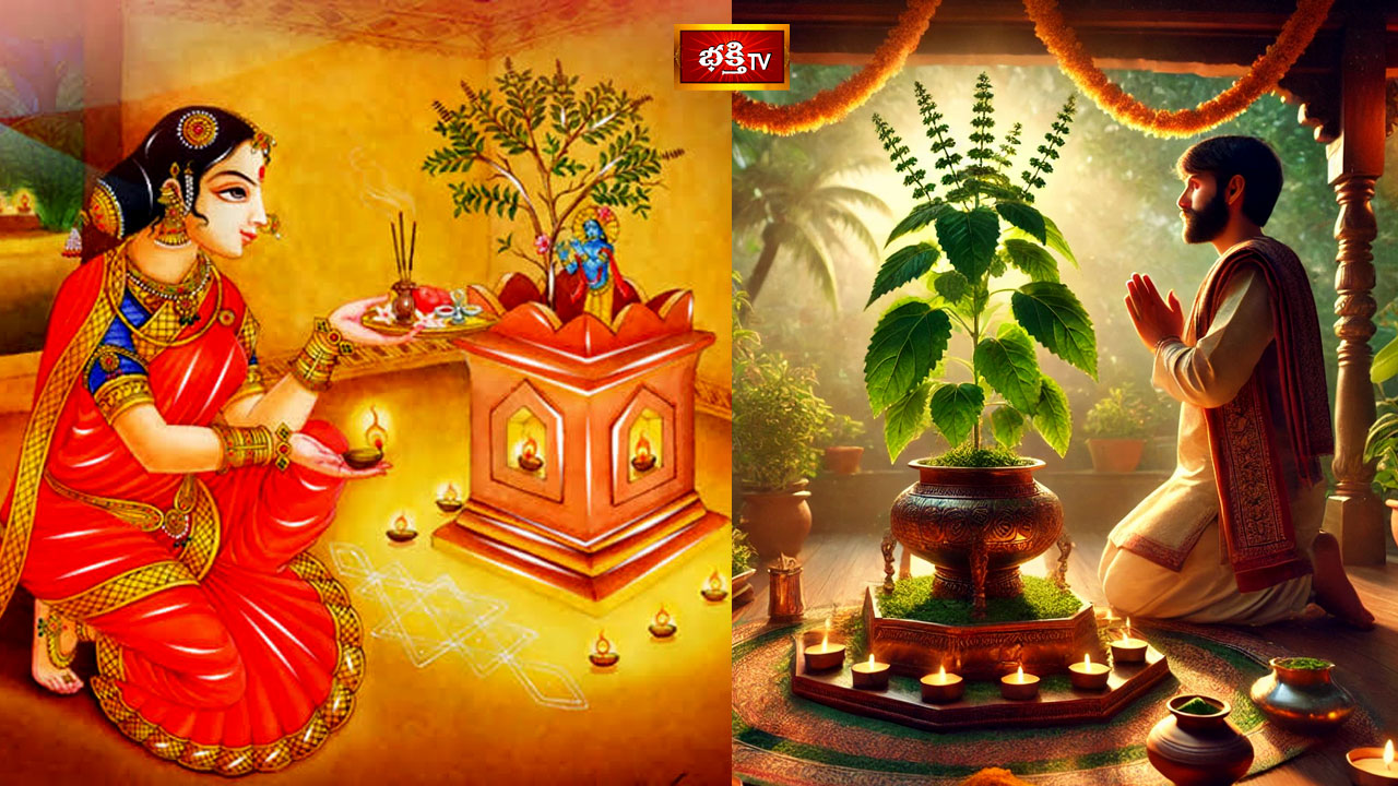 అని చెంబులోని నీళ్లను తులసిచెట్టు మొదట్లో పోసి నమస్కరించాలి.