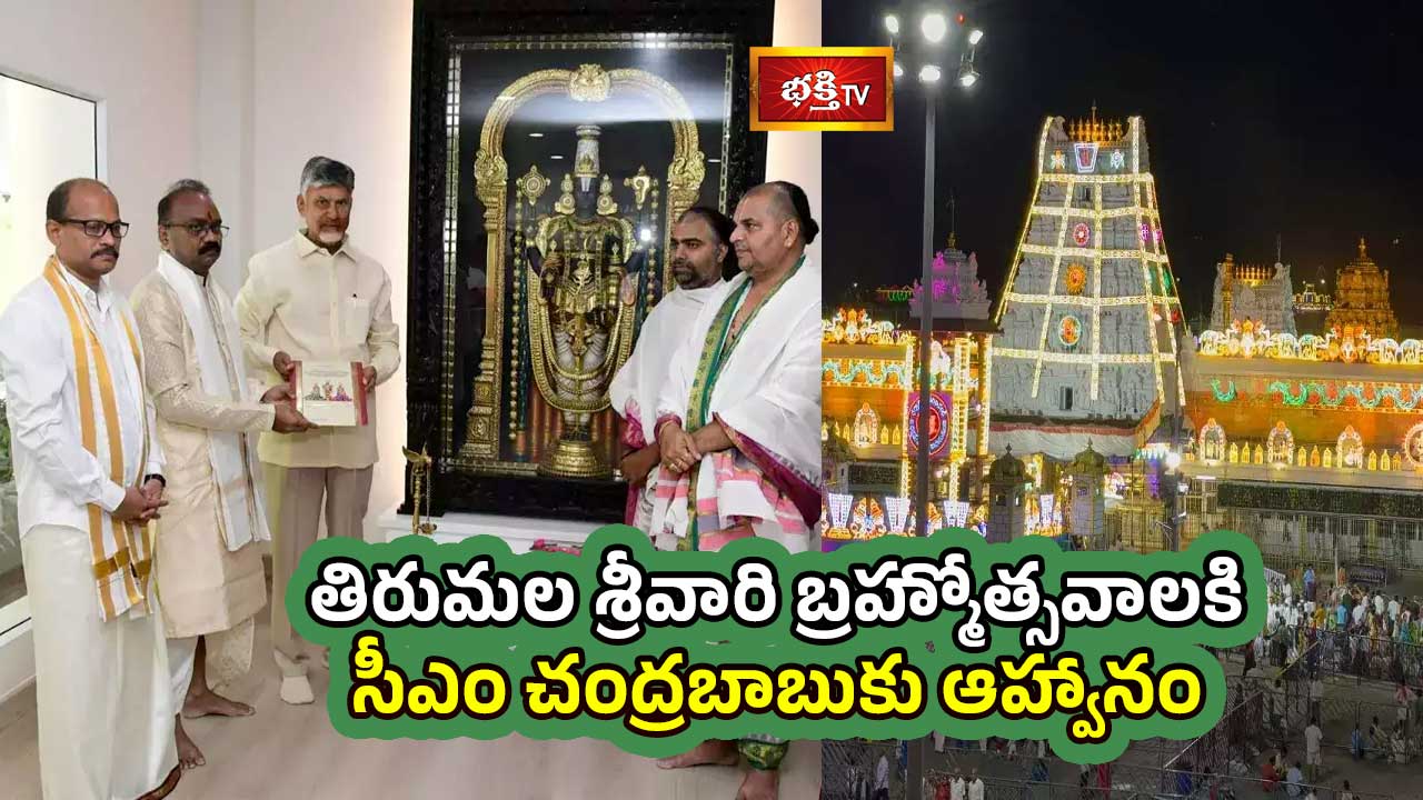 తిరుమలలో అక్టోబర్ 4 నుంచి 12వ తేదీ వరకూ జరిగే శ్రీవారి బ్రహ్మోత్సవాలకు విచ్చేయాలని ముఖ్యమంత్రి నారా చంద్రబాబు నాయుడును తిరుమల తిరుపతి దేవస్థానం ఈవో శ్రీ జె. శ్యామలరావు, అదనపు ఈవో శ్రీ సిహెచ్ వెంకయ్య చౌదరితో కలిసి ఆహ్వానించారు. ఆదివారం ఉదయం ఉండవల్లిలోని ముఖ్యమంత్రి నివాసానికి వచ్చిన టీటీడీ ఈవో, అదనపు ఈవో ఆయనకు బ్రహ్మోత్సవాల ఆహ్వాన పత్రిక అందించారు. ఈ సందర్భంగా శ్రీవారి ఆలయ ప్రధాన అర్చకులలో ఒకరైన శ్రీ వేణుగోపాల దీక్షితులు, వేదపండితులు గౌరవ ముఖ్యమంత్రికి వేద ఆశీర్వచనం చేశారు. అనంతరం ఆయనకు శ్రీవారి తీర్థ ప్రసాదాలు అందించారు.