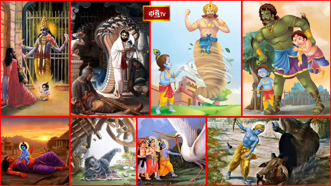 కృష్ణుడు పుట్టడమే ఖైదీగా పుట్టాడు. పుట్టిన మరునిమిషమే కన్న తల్లిదండ్రులకు దూరమయ్యాడు. అనేక కష్టాలతో రేపల్లెకు వలసపోయాడు. ఆ తరువాత కొన్ని వారాల వయసుకే శ్రీకృష్ణునిపై మొదటగా పూతన హత్యా ప్రయత్నం చేసింది. అప్పటి నుంచి ఆయనకు దినదిన గండంగానే గడిచింది. కృష్ణుని శైశవదశ, బాల్యదశ కూడా – శకటాసురుడు, తృణావర్తుడు, వత్సకుడు, బకాసురుడు, వృషభాసురుడు, కేశి, వ్యోమాసురుడు మొదలైన ఎందరో రాక్షసులతోనూ, శంఖచూడుడనే యక్షునితోనూ, కాళీయుడు అనే సర్పరాజుతోనూ పోరాటాలతోనే సరిపోయింది. కేవలం పదహారేళ్ళకే ఇన్ని గండాలు, కష్టాలు, సమస్యలు వస్తే ఎంత కష్టమో కదా.