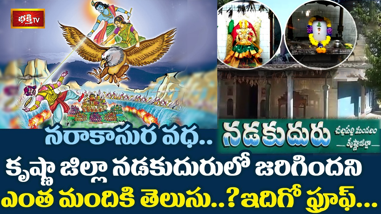 ఒకరోజు వేటకు వెళ్లి నరకుడు జంతువు కోసం బాణం వేస్తే అది గురి తప్పి బ్రాహ్మణుడికి తగిలి అతడు మరణిస్తాడు. బ్రాహ్మణ హత్య మహాపాతకంగా భావించిన నరకుడు కృష్ణానదీ తీరంలో ఉన్న నడకుదురుకు చేరుకుని పృథ్వీశ్వరస్వామిని పుష్కర కాలం పాటు పూజించాడు. ఆ సమయంలోనే మహిళలను బంధించి హింసించేవాడు. దీంతో ఆ ప్రాంతంలోని మహిళలంతా భయబ్రాంతులకు లోనై శ్రీకృష్ణుడిని శరణు వేడుకున్నారు. అప్పుడు శ్రీకృష్ణుడు సత్యభామా సమేతుడై వచ్చి నరకాసురుడిని సంహరించి అక్కడి ప్రజలను రక్షించాడు. కృష్ణా జిల్లా చల్లపల్లి మండలం నడకుదురును నరకాసురుని సంహరించిన ప్రదేశంగా చెబుతారు.
