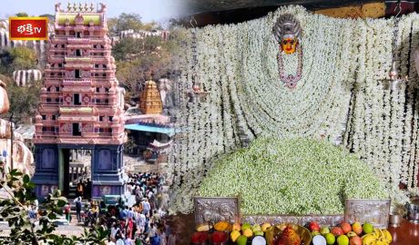 తెల్లని పూల మధ్య మెరిసిపోయిన వనదుర్గా భవాని..