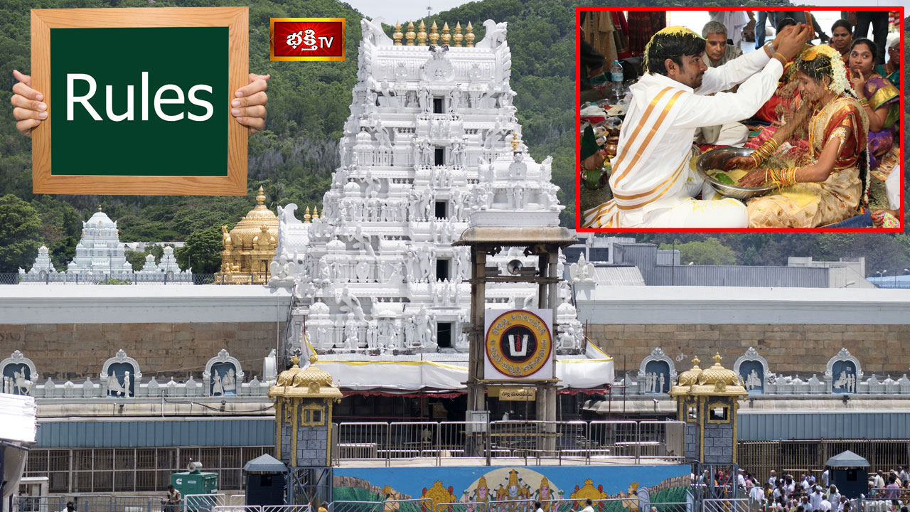 తిరుమలలోని కల్యాణ వేదికలో ఉచిత వివాహలు చేసుకునేందుకు ఏమేం కావాలి? ఎలా బుక్ చేసుకోవాలనేది తెలుసుకున్నాం కదా. ఇప్పుుడ తిరుమలలో వివాహం చేసుకునేందుకు రూల్స్ ఏంటో తెలుసుకుందాం. కరెంటు బుకింగ్ / ఆన్లైన్లో బుక్ చేసుకునే జంటలు తిరుమలలో ఉచితంగా వివాహం చేసుకొనుటకు తప్పనిసరిగా హిందూ మతస్థులై ఉండాలి. వధువుకు 18 సంవత్సరాలు, వరునికి 21 సంవత్సరాలు నిండివుండాలి. ద్వితీయ వివాహములు, ప్రేమ వివాహములు ఇక్కడ జరుపబడవు. వధూవరులు తప్పనిసరిగా తల్లిదండ్రుల వివరాలను నమోదు చేయడమేకాక ఆధార్ కార్డులను అప్లోడ్ చేయాలి. ఇతర వివరాలకు ఫోన్ – 0877 – 2263433 సంప్రదించవచ్చు.